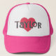 Monogram cap with personalised name TAYLOR on red with pink heart