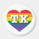 This magnet features a rainbow pride heart containing the bold, white, capital letters TX, the official abbreviation for Texas, the lone star state. Show your true colours, support marriage equality, and celebrate gay pride.