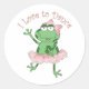 I Love to Dance Ballerina Frog Pink Classic Round Sticker