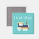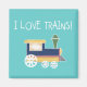 A choo-choo train in primary colours of red, blue, yellow, and red and text that reads "I Love Trains", perfect for the little engineer or conductor!