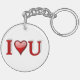 Valentine's day key chain with I heart U in 3D red text. Round and square key chains available in several styles. Great for family and friends or that special someone.