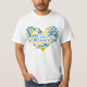 Folk art illustration heart and lettering in Ukrainian flag colours and ethnical pattern