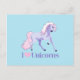 I heart beautiful pink and purple unicorns on cotton candy blue backgrounds.