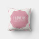 A cute pillow with pink hearts and crest, along with the words, "I love us". Feel free to change the sentiment to suit the occasion. Personalize the pillow with your name and your partner's. This would make a great wedding anniversary or Valentine's Day gift.