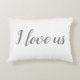 "I love us" in pretty script on a comfy accent pillow. This one's colour is pure white with cloud grey script, and we have it in many other colours as well. Check out the others with an easy click to see which splash of colour would look best to add this loving message to your home decor. This example is set up with a washable cotton cover, but it's also easy to choose other fabric choices with different prices.