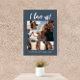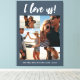 Modern blue and white "I love us" brush script photo collage canvas with personalised name and year.