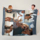 Modern blue and white "I love us" brush script photo collage blanket with personalised name and year.