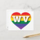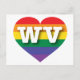 This postcard features a rainbow pride heart overlaid by the bold, white, capital letters WV, the official abbreviation for West Virginia, the mountain state. Show your true colours, support marriage equality, and celebrate gay pride.