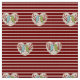 This fabric features HoMeArts' original design of Robin's egg blue and avocado green lovebirds surrounded by branches & red holly berries in a lemon yellow heart stand out from a background of dark red and cream coloured stripes.
