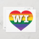 This postcard features a rainbow heart containing the bold, white, capital letters WI, the official abbreviation for Wisconsin, the badger state The reverse side of the postcard is blank, awaiting your handwritten sentiments or customised text. Show your true colours, support marriage equality, and celebrate gay pride.