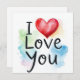 A simply stunning watercolor I love you card. Perfect for any occasion or just to say I Love You. Blank Inside for your own message.