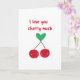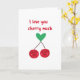 This is Custom Funny valentines day holiday card featuring funny kawaii sweet cherries connected by green heart with I love you cherry much joke. It's cute card for your lover in this special day. You can change the name and the message in the card using personalise button.