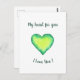 I Love You Cute Green and Blue Heart Birthday Postcard