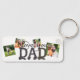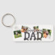 On the middle of this keychain, there’s the text: I love you Dad, where the first words are written with a beautiful calligraphic font, with arabesque legs letters. Below, Dad is written in big letters with a wood texture and a reflection on the ground. This is a symbol for the strength and protection of a father. In the background 4 pictures allow you to remind the memories of your best moments with your Dad .