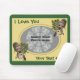 Say I Love You with a cute girl and a lollipop and puppies photo frame ready for your favourite picture customisable computer mousepad. You can add or change any text you like, or delete for no text. Add your photo by clicking on Change and upload your picture. Click on Customise to adjust your photo or change text size, style, or colour. Great gift idea for birthdays, anniversaries, Valentine's Day, or any occasion. This image is available on many products in my gallery.
