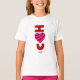 You can admire my Valentine's Day drawing and romantic drawing that I call, "I Love You," of a red and pink striped heart, added onto this girls white basic t shirt.