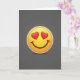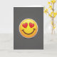 This cheerful card centers on the familiar heart-eyes emoji, shown large and bright against a deep gray background. The face glows in warm yellow tones with a smooth, glossy look that catches the light. Its red heart-shaped eyes and wide smile instantly express happiness, affection, and admiration. A soft shadow beneath the face adds depth, making it appear slightly lifted from the background. A crisp white outline clearly defines the shape and gives the design a bold, polished finish. The contrast between the bright emoji and the dark backdrop makes the expression stand out even more. This card delivers a clear message of love and joy, making it a fun and heartfelt choice for Valentine’s Day or anytime you want to share affection. ❤️