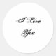 I Love You. In a script font. Black and White. Classic Round Sticker