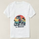 A vibrant shirt design featuring a playful and adorable cartoon-style dinosaur. The dinosaur is illustrated in a lively pose, with its tiny arms outstretched as if giving a hug. It’s coloured in shades of green and blue, with cute details like rosy cheeks and a big, friendly smile.