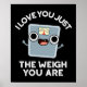 I Love You Just The Weigh You Are Funny Diet Pun features a cute weighing scale . Perfect pun gift for family and friends who love cute weighing scale puns.