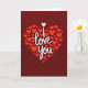 This Valentine's Day card shows a large heart shape made from many small red hearts on a deep maroon background. In the middle, the words “I love you” are written in flowing white lettering that stands out right away. The small hearts vary in size and sit close together, with light shadowing that gives them a slight raised look. A tiny white heart appears above the “I,” like a little accent that draws your eye. The overall look feels warm and romantic, with the reds and whites popping against the darker background. There aren’t any characters, but the heart pattern and the message make the card feel full of affection 💘❤️. It’s an easy, loving way to share Valentine’s Day sentiments with someone special.