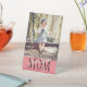 Modern pedestal sign with a custom photo and ''I love you mom '' script. Perfect gift for mother's day.