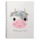 I love you moo! Cute Cow with Floral Wreath Notebook