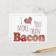 Looking for a unique and hilarious way to express your love this Valentine’s Day? This “I Love You More Than Bacon” card is the perfect blend of humour and affection! Whether your sweetheart is a bacon aficionado or just loves a good laugh, this fun card will make them smile (and maybe even crave breakfast)!