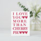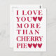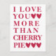 NewParkLane - Postcard, with cute quote 'I Love You More Than Cherry Pie' in a classic cherry red typography, with cherry red hearts.