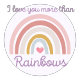 I love you more than rainbows cute quote text. A lovely print perfect for a nursery or child's room or even for your valentine. I opted for a sweet font and soft colours with pastel shades of purple, lavender, rose, and pinks to show that more comfortable and tender side of love that is felt for people who are special to you in many ways. Rainbows are typically seen as a sign of hope, and indication that there is good after the bad and hope is something we should hold dear. This is why I opted for the topic of rainbows.