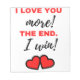 I Love You More! The End. I Win! design. This is a short funny quote which is great as a Valentine's Day gift for girlfriend, boyfriend, him, her, couples, husband or wife. Also suitable as a general Love gift for Anniversary, Birthday or Christmas
