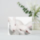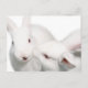 Two white rabbits, one planting a kiss on the others cheek