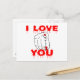I Love You text with red blood dripping letters and a line drawing of a female hand with an index finger pointing at the viewer. For fun and Halloween