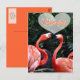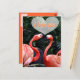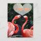 Two beautiful flamingos, looks like the are about to kiss or hug with the words I Love You in the centre of a heart above them.