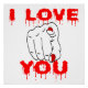 I Love You text with red blood dripping letters and a line drawing of a female hand with an index finger pointing at the viewer. For fun and Halloween