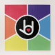 A black circle with a white “I love you” handshape with a red heart inside. The circle is in the middle of a square with rays emanating from it in the colours of the rainbow - purple, red, orange, yellow, green, and blue.
