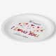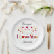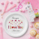 I LOVE YOU Red Heart Gold Ribbon Valentine Wedding Paper Plate