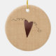 Primitive snowman says I (heart) love you so much! Back of ornament has a primitive country heart. Such a sweet ornament to give a loved one who loves the country & primitive look!