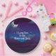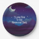 I love you to the moon and back, blue-indigo landscape with white crescent moon,