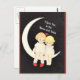 I Love You to the Moon and Back postcard. Vintage boy and girl over the moon in love, great for Valentine's Day.