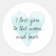 I love you to the moon and back romantic Classic Round Sticker. Artistic blue watercolor heart painting with handwritten typography. Add your own personalised quote or name. Custom envelope seals and wedding party favour sealers for friends, family, guests etc. Great for newlywed couple, partner, husband and wife, girlfriend and boyfriend, friends, family etc.