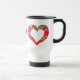 This thermal mug warms your heart as it keeps your beverage warm, with red heart designs and a message of I love you, Valentine. Delete th word "valentine" if so desired, to create a mug that makes a cute gift any time of the year. Text may be personalised prior to purchase.