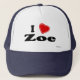 I love Zoe! Is your name Zoe? Do you have a husband, boyfriend, male family member or male friend who you know loves you? Or do you have a wife, girlfriend, female family member or female friend named Zoe whom you love deeply? If so, this "I Love" hat is exactly the gift that you're looking for! The design features the letter "I" in black lettering with a red heart on the top and "Zoe" in black lettering on the bottom.