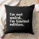 Grab this " I’m not weird I’m limited edition " design funny sayings tee shirt to show your sense of humour by wearing this basic cool text style. for Black and White Contemporary Art Lovers. I'm sure that it can spark many conversations and will help with breaking the ice. This design is a great gift idea for friends or family and also makes a great birthday, holiday gift, or Christmas present. (YOU CAN CHANGE AND CUSTOMIZE THIS TEXT DESIGN OR ANY TEXT YOU WANT IN MY STORE!).