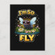 A cheerful cartoon fly with oversized red eyes stands proudly on a lily pad beneath a sparkling night sky, celebrating humor, confidence, and playful charm.