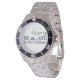 Has heft and feel of expensive stainless steel quartz watches. Good band with safety catch. I removed links, which is easy because engraved arrows show direction to push the linking pins. As always by this seller, the image (a railroad logo) is a perfect reproduction of my emailed image, and is precisely spaced and aligned.