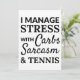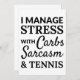 I manage stress with carbs, sarcasm and tennis. For person who loves carbs AND tennis. Funny gift for Christmas, Birthdays, Father’s Day, Mother’s Day or for yourself.