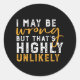 I May Be Wrong But Highly Unlikely Funny Sarcasm Classic Round Sticker