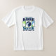 White T Shirt with Dark Blue and Dark Teal Lettering. Caption says "I may live in HAWAII but my team is in SEATTLE.' The centre of design has a round Hawaiian Wave logo and palm trees with dark blue and lime green pin striping to finish off the design nicely.