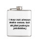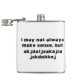 It started as a harmless tweet. It spread into a nonsensical status update. Now - it is a FLASK! Reads: 'I may not always make sense, but akjdafjsakejiajskdnhhej' Original design by Sunny. Copyright 2014